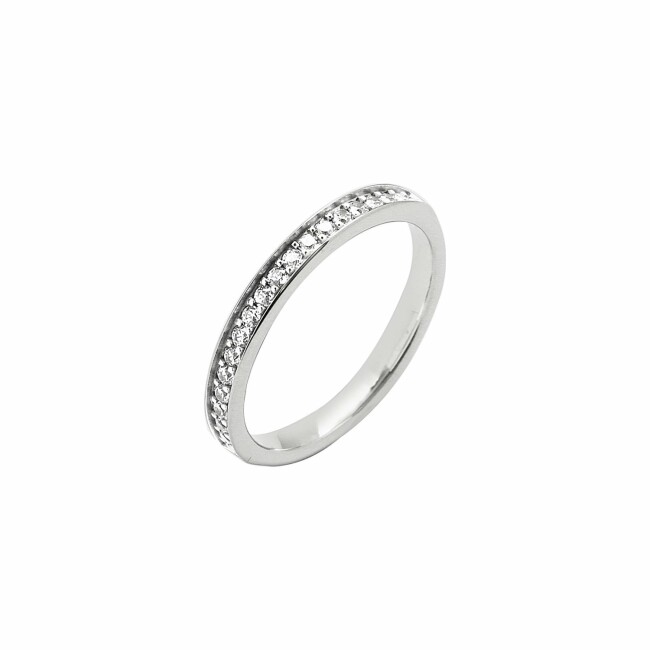 Alliance demi-tour serti grain en or blanc et diamants de 0.20ct