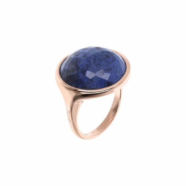 Alba Bague Bronzallure Alba Hard cut en métal doré rose à l'or fin 18 carats et agate bleue, taille 54