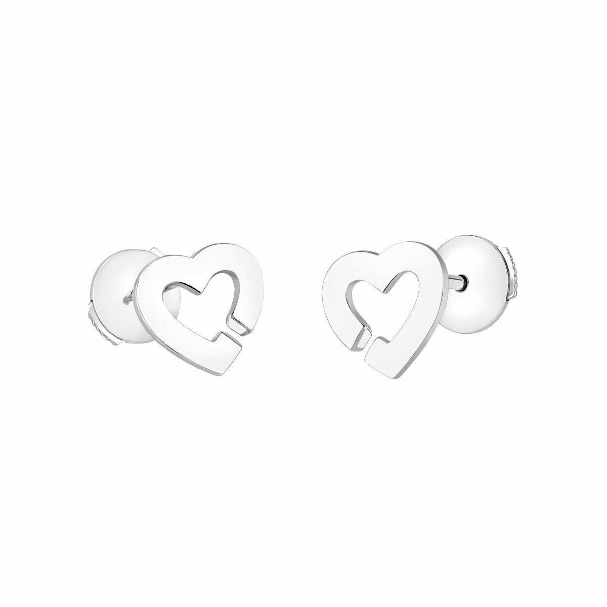 Romantiques à souhait sur ces boucles d'oreilles en or blanc, les menottes prennent la forme d'un cœur.