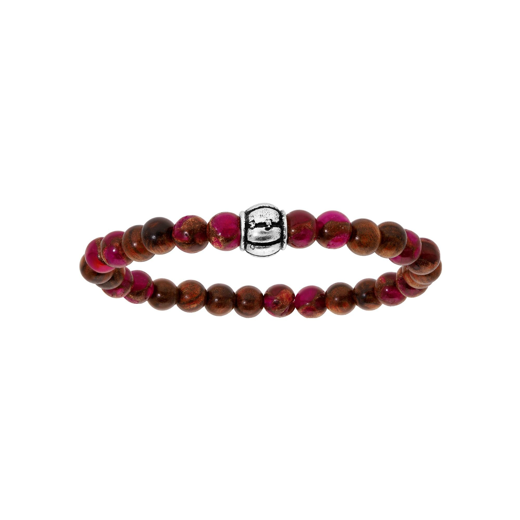 Bracelet acier extensible perles bois et quartz rose et motif petit modèle