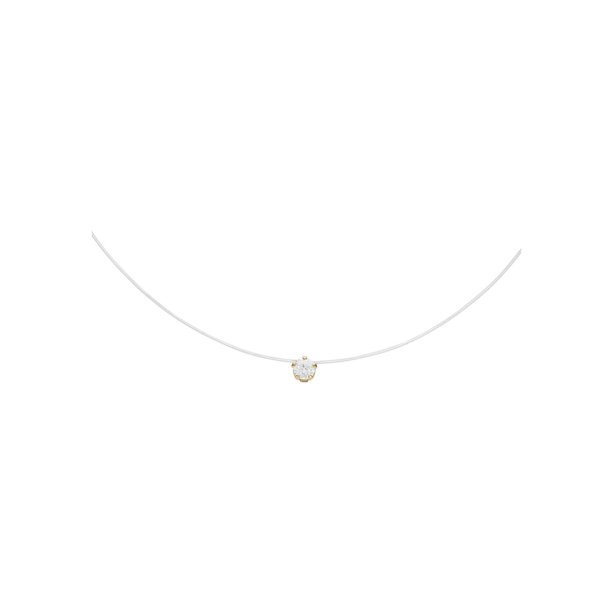 Collier argent doré jaune fil nylon solitaire oxyde blanc 5mm réglable jusqu'à 50cm